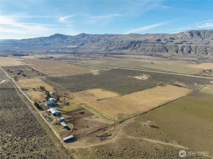 Turnkey 60+ acre Okanogan Valley ranch property built for the working farmer and livestock operator. Level ground with a gentle slope, easy access off HWY 97, yet set back for the privacy you want. Strong water setup with 2 wells, sprinkler system, and water rights-currently irrigating 20 acres, with the potential (well upgrade) to irrigate all 60 acres. Solid infrastructure includes a 70x30 hay barn, an additional hay barn, chute, cow and horse pastures, lighted trough with power, tractor shed, and a 30x20 welding shop/tack room. Comfortable and functional 2 bed, 1.5 bath log home with wood floors, large mud room, and two new decks. Bonus detached studio cabin with full kitchen and 3/4 bath. Hobby orchard with established apricot, cherry, apple, plum, pear, almond & walnut trees. Chicken house, dog run, tool shed..everything ready to ranch, farm, and homestead.