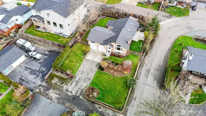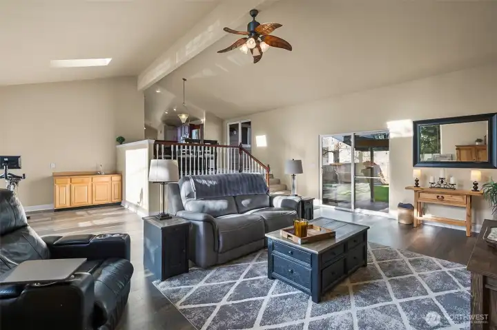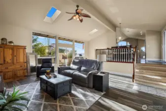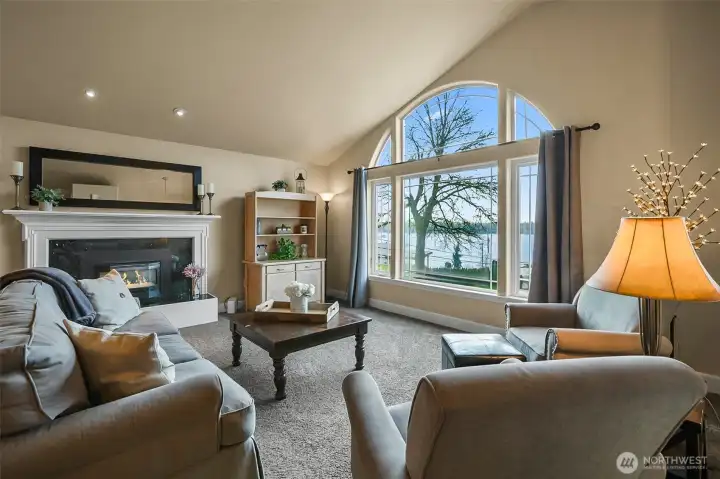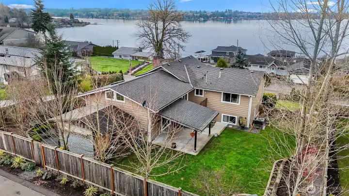 Stunning Lake Stevens custom multi-level home with breathtaking lake and mountain views. The light-filled kitchen features bar seating, generous cabinetry, and stainless steel appliances. Enjoy cozy evenings by the gas fireplace in the vaulted living room, or entertain in the oversized vaulted family room with skylights, wet bar, and direct backyard access. Spacious primary suite with private bath. Lower level includes two additional rooms, great for office, work out space or theater room, 3/4 bath, and laundry. Two-car garage plus large workshop. Fully fenced backyard with firepit, tucked away on a quiet cul-de-sac. Newer roof, furnace, and A/C. Minutes to downtown Lake Stevens. No HOA and unforgettable sunsets.