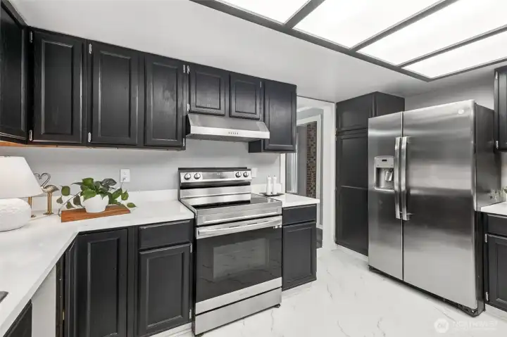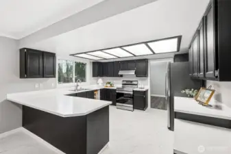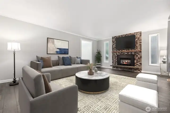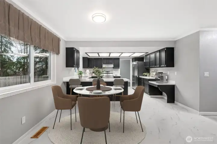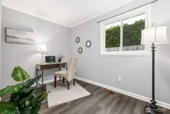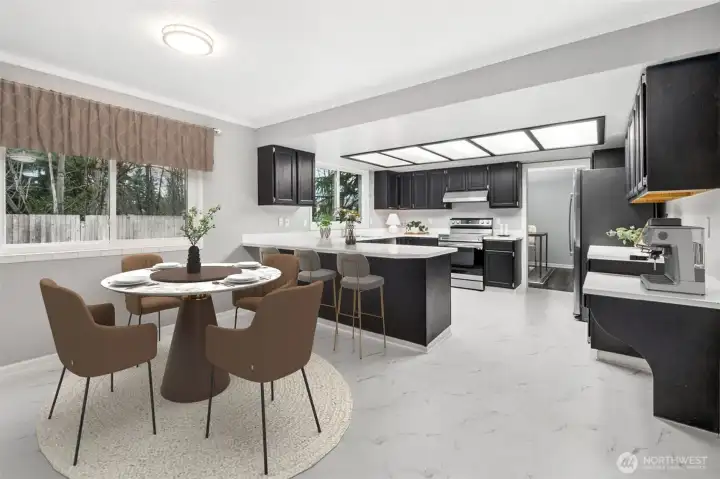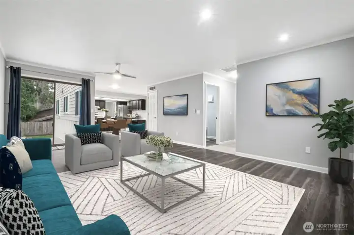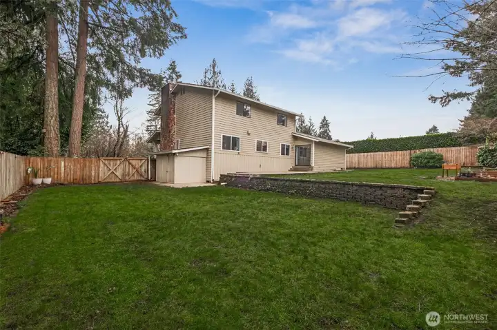 Tucked away on a peaceful private road, this charming, open concept 3 bedroom home on over 1/4 Acres offers a serene retreat just steps from nature. Enjoy morning coffee on the covered porch through elegant French doors, surrounded by lush greenery. Thoughtfully updated and lovingly maintained. The main level boasts newer windows (2022) and engineered flooring and generous gathering spaces in the living room anchored by a cozy gas fireplace, formal dining area and the updated eat-in kitchen with painted cabinetry. Also, the kitchen area flows into the inviting family room, which opens to a large patio and an expansive, fully fenced backyard with garden spot—your perfect space for outdoor living and play. You’ll also find a convenient laundry room, a stylish half bath and flexible office space. Upstairs features a spacious primary suite with private bath, two additional bedrooms and a well-appointed guest bath. Upgrades include a 50-year roof with gutter helmets, A/C, freshened paint and more. Extra storage included in attic with pull down access and in the attached and detached outdoor storage sheds. This amazing home is ideally located near East Hill/Covington amenities, Lake Meridian, local schools and the Kent Service Ball Fields Park just down the road. No HOA and ready for you to call it home!