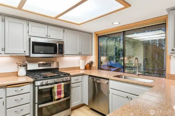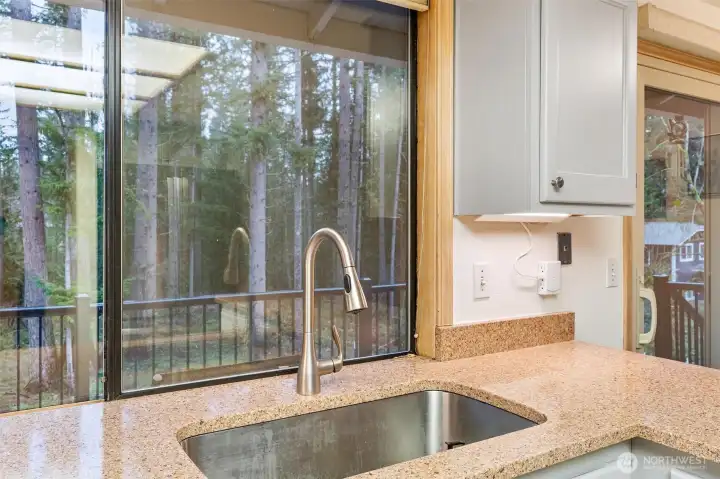 Discover this exceptional five-bedroom home in the desirable Sammamish Highlands, set on a lush shy-acre backing to a serene greenbelt. Enjoy fresh interior paint, new carpet, and luxury vinyl plank flooring. The refreshed kitchen offers brand-new refrigerator and dishwasher plus custom cabinetry for ample storage. Main level features a cozy fireplace and immense natural light. Oversized Trex deck overlooks flowering trees and blueberry bushes—ideal for entertaining. Expansive lower level provides ADU / Mother-in-law additional living space with kitchen and separate access. Located in a highly rated school district with endless nearby amenities. A year-old Tuff Shed with warranty and three-car garage complete this rare find.