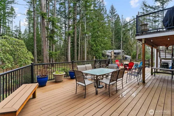 Rare Sammamish Highlands opportunity featuring a fully independent ADU with a private entrance. Ideal for multi-generational living, guests, or income potential. Set on a tranquil shy-acre lot backing to a peaceful greenbelt and RV parking. Home is wired for generator. This exceptional five-bedroom home in the highly sought-after Issaquah School District offers a lower-level mother-in-law/ADU-style living space complete with a second kitchen and its own dedicated entrance, providing true separation and flexibility. Fresh interior paint, new carpet, and luxury vinyl plank flooring enhance the home throughout, while the refreshed main kitchen features new refrigerator, dishwasher, and custom cabinetry with abundant storage. Chef inspired double oven. Sun-filled living areas are anchored by one of two wood-burning fireplaces, creating warm and inviting spaces to gather. Outdoors, enjoy an oversized Trex entertaining deck overlooking mature landscaping, flowering trees, and blueberry bushes—perfect for Pacific Northwest living. Walking distance to top-rated elementary schools, neighborhood parks, and community amenities. A three-car garage and newer Tuff Shed with warranty complete this rare property offering privacy, versatility, and long-term value.
