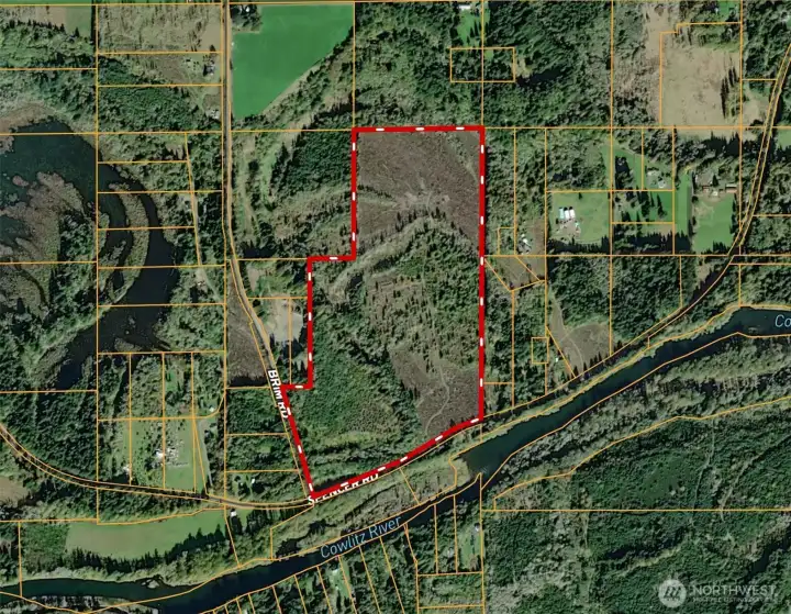 Over 120 acres just north of the Cowlitz River and a short drive to the Cowlitz River boat launch. About 10 minutes to Onalaska and about 15 minutes to the Mayfield Lake boat launch. ARL zoning provides potential to segregate the property in to six lots. Level to rolling topography with building sites that sit above and back from paved, county road access. Power and phone in the street. Reprod stands of timber in the southwest portion of the property. Gated access. Buyer to verify all information to own satisfaction.