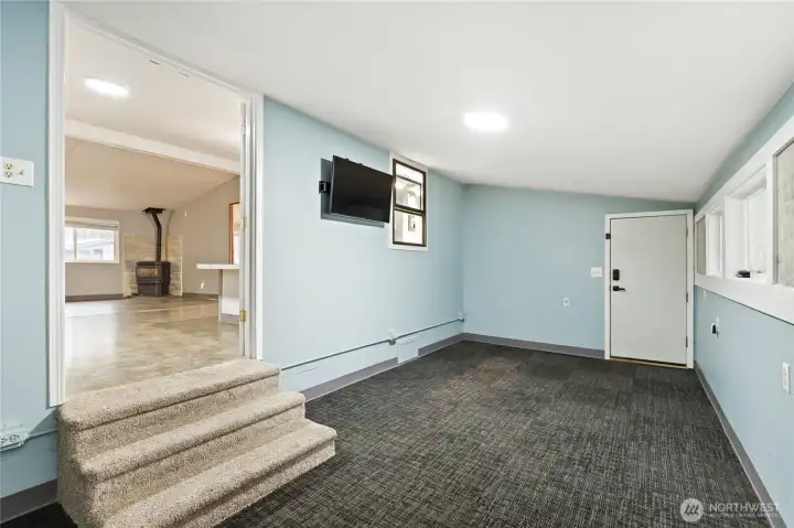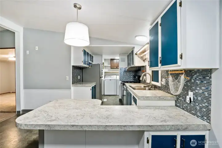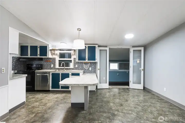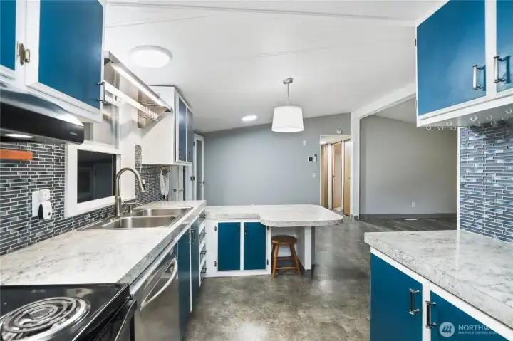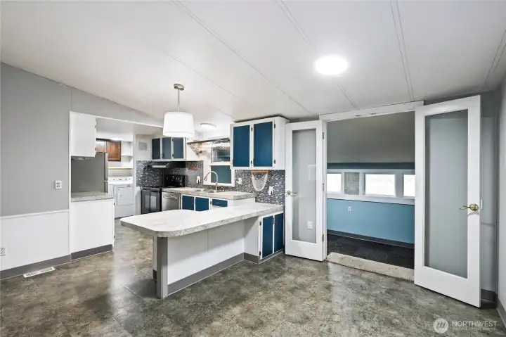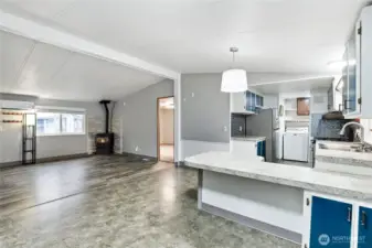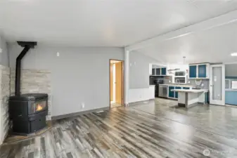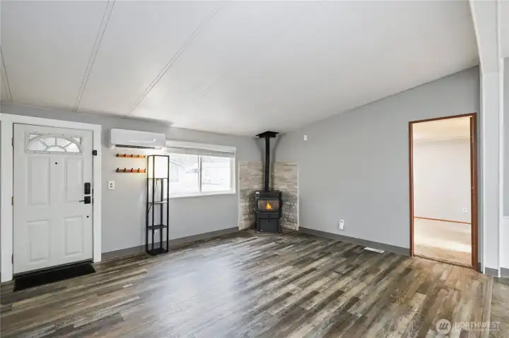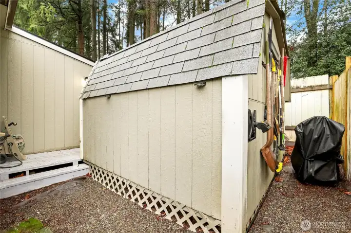 Charming and well maintained double wide featuring a spacious open floorplan with multiple gathering spaces for everyday living plus entertaining. Recent updates include a roof, subfloor and flooring completed within the last five years. The home offers three bedrooms, flexible living areas and a bright layout, plus a 280 SF stick built addition included in the square footage. A spacious garage and a powered outbuilding set up as a hobby shed provide excellent versatility. Outdoors, enjoy a patio for a firepit, gardening space and a peaceful setting backing to a greenbelt. Ductless mini split and pellet stove offer versatile heating options. Cameras are present on the property.