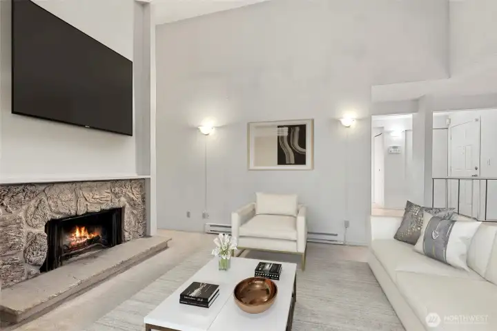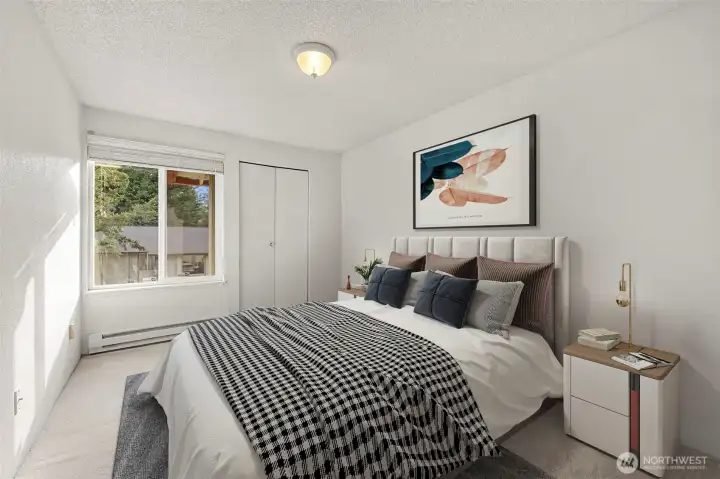 This 2-bed, 2-bath top floor condo offers an incredible opportunity to live overlooking the Fairwood Golf Course at an unbeatable price—perfect for those who value location, views, and potential. Home features vaulted ceilings, newer SS appliances and a cozy wood-burning fireplace. The spacious primary bedroom includes an en-suite bath and a large closet. The second bedroom easily flexes as a guest room or home office. Brand-new in-unit washer and dryer. One assigned parking space right at your door, ample guest parking, and access to community amenities including a pool, clubhouse and a playground. Low HOA dues cover garbage, sewer and water. Minutes to shopping, restaurants, parks, public transit, and schools. No rental cap.