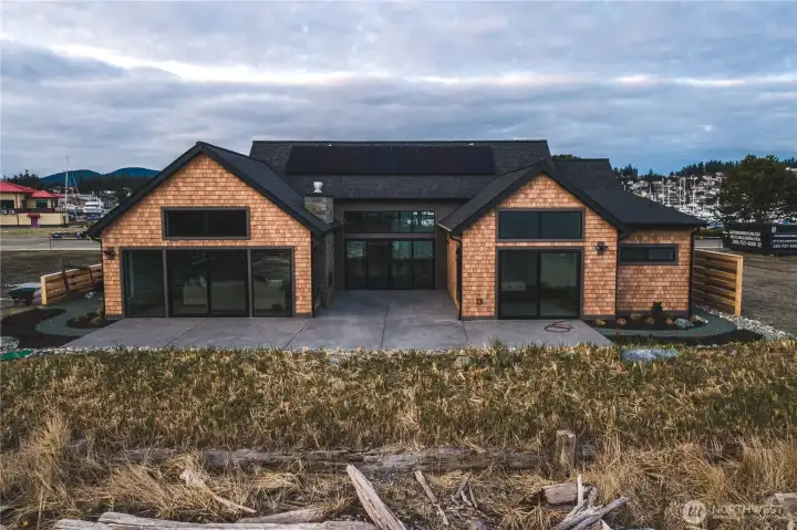 Step into a refined coastal modern retreat, where a luminous entry sets the tone for effortless elegance. Walls of glass in the dining, great room & primary suite bathe the home in natural light while framing sweeping, unobstructed beach views. Thoughtfully designed with sleek coastal lines & subtle mid-century influences, the living space is anchored by a striking stone fireplace that adds warmth and architectural interest. Seamless indoor-outdoor living enhances the tranquil beachside setting, creating a home that feels both sophisticated and serene. A waterfront site steps from Skyline Marina & Washington Park with south facing views of Burrows Bay, Rosario Straight & a parade of boat traffic that will keep you endlessly captivated.