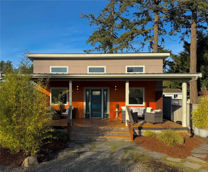 Nearly new, bright, sunny south facing home close in to both Uptown and Downtown. Great room concept with vaulted ceilings and skylights allows this charming house to live larger than the square footage. Two bedrooms, primary bath is gorgeous, with deep free standing tub. Second bedroom and 3/4 bath. Oh! And the sizable covered front porch feels like another room! Enjoy outdoor living all year round. Low maintenance yard and electric car charger installed. Beautiful glass case in kitchen included in purchase.