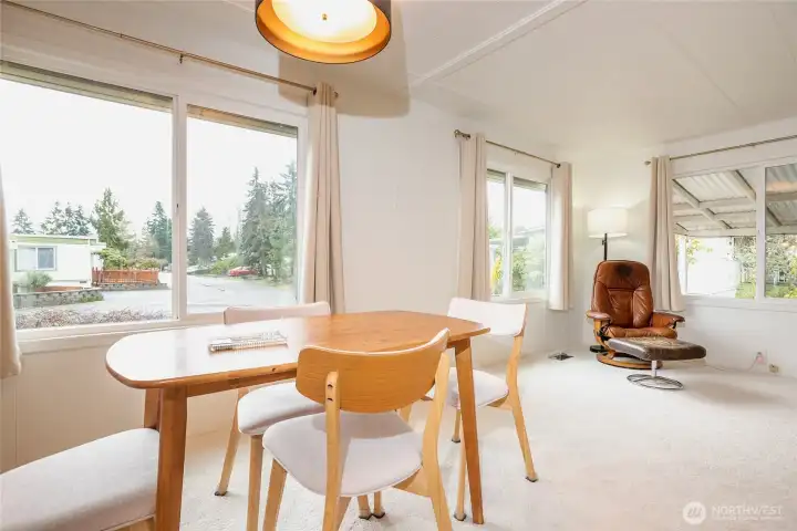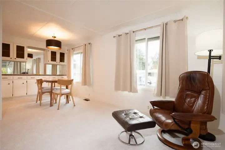 Welcome to Kingsbury West, an Energetic 55 +Community, Well maintained, Partly Furnished Home, offers 2 bedrooms and 2 baths. All appliances stay w/Home. Great home for Comfort and Serenity, w/Flowing Floor Plan. Carport/Shed/Ramp, covered Patio, Mostly Newer Vinyl Windows. Large living room. This Vacant and Affordable home with lower rent than other 55+ parks in Lynnwood has a Large Clubhouse for monthly events. Close to, many Grocery stores, Costco Gas, Alderwood Mall, Hw 99. Sold As-Is.