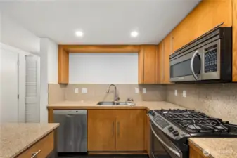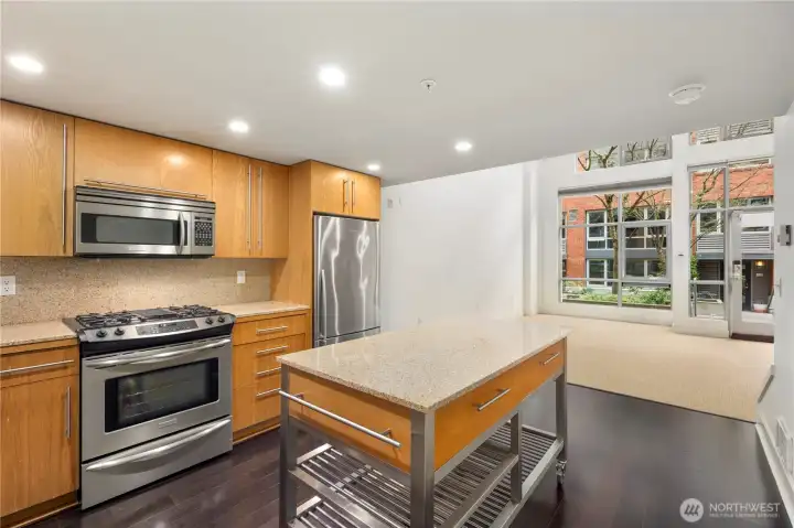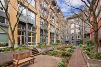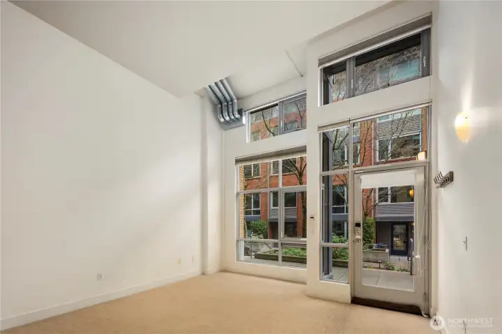 The Brix. Industrial modern loft on Broadway in the heart of Capitol Hill. Private, gated courtyard entrance. Soaring ceiling and towering windows. Natural light. Art gallery walls. Ample kitchen with granite, stainless steel and rolling chef's island. Spacious primary suite with walk in closet and attached full bath. Loft overlooking open floor plan and elegant, treelined courtyard. Sophisticated building with rooftop deck and city views. Secure one vehicle parking and storage. An urban oasis amidst the buzz.