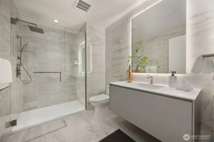 Nestled in the heart of downtown Bellevue, this brand new luxury condo offers a refined one-bedroom, one-bath retreat crafted for modern living. Smart and functional, the residence boasts top of the line fixtures from world renowned brands, blending elegance with practicality. Thoughtfully crafted interiors feature harmonious tones, clean lines and discreet textures, creating a balanced environment that nurtures well-being. Beyond your private sanctuary, enjoy amenities including a fitness room, stylish lounge and dog run. The building's modern lobby welcomes you with dramatic lighting, a living wall and a striking fireplace - signaling your arrival at a place where luxury and wellness converge seamlessly .