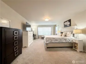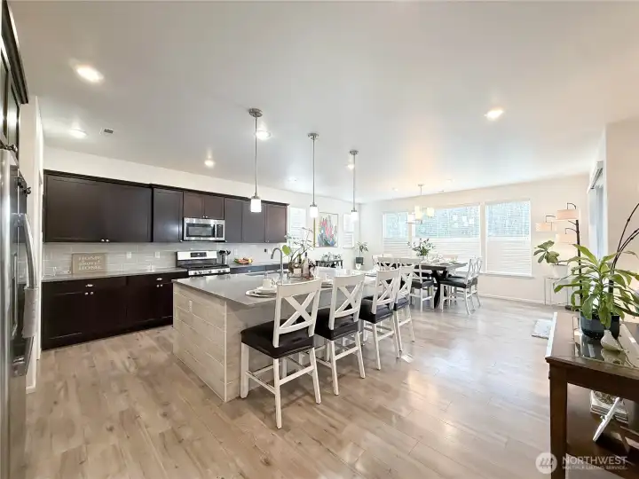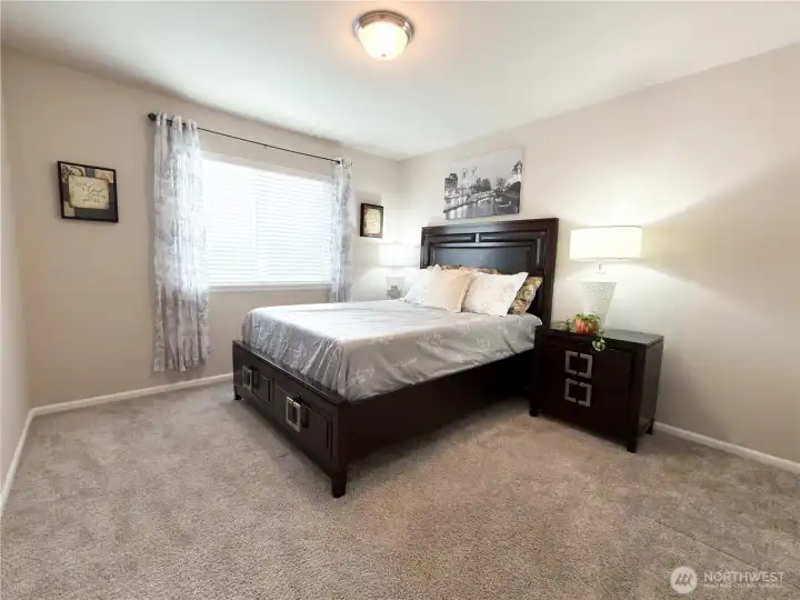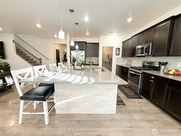 Beautifully maintained 5-bedrm, backing to a serene greenbelt & situated on a desirable corner lot. Features include a main-floor bedrm nearby ¾ bth & a spacious open-concept layout ideal for everyday living & entertaining. Modern spacious gorgeous kitchen offers quartz countertops, tile backsplash, a large island, SS appliances, & a walk-in pantry, flowing seamlessly into the dining & living areas. Upstairs, enjoy a generous loft & an expansive primary suite w/ a 5-piece bath, soaking tub, walk-in shower, & oversized walk-in closet. Fully fenced yard w/ fruit trees, vegetable garden, rose garden, & a private covered patio—perfect for year-round enjoyment. A truly impressive & inviting home. Park & basketball court, & trails. Can't miss it!