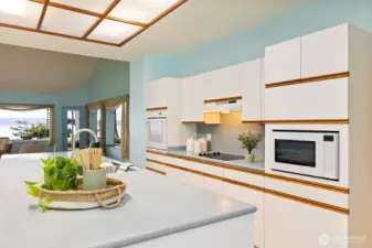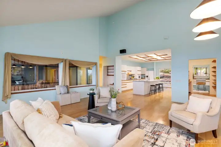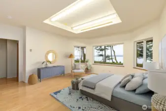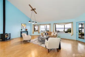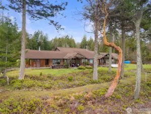 Stunning panoramic views of Admiralty Inlet, Mt. Baker & Rainier. With over 200 ft of waterfront & 5.9 private acres, this extraordinary Marrowstone property offers privacy & flexibility. Water views grace nearly every rm of this expansive, single-level home, featuring a versatile floor plan. Property highlights include a workshop, 3 car garage, solar power & radiant floor heating. Primary suite offers dual sinks, showers, closets, & sitting area. Two living rooms provide inviting spaces to gather—one formal w/ a fireplace, the other w/ wood stove. Kitchen is the heart of the home, boasting a 12-ft island, walk-through pantry, standing desk, sliding doors to kitchen garden. Watch Eagles sore, Orcas migrate & the sun rise over the Cascades!