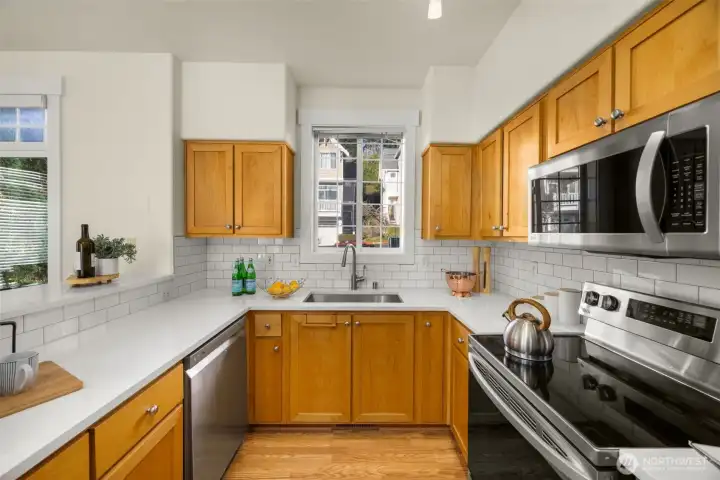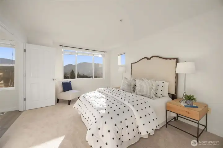 Experience the beauty & convenience of Issaquah living in this stunning end-unit townhome, offering breathtaking mountain views. This home features high-end finishes, a renovated kitchen w/ newer appliances, & a luxurious master ensuite w/ French doors & a WIC, new carpet & freshly painted. The main floor offers a seamless flow b/w the great room, dining area, powder room, patio & kitchen, complete w/ a cozy gas fireplace & spacious deck w/ 180-degree views. A versatile lower-level room w/ custom open shelving & lighting is perfect as a bonus room, home office, or guest suite. Enjoy a 2-car garage, ample visitor parking, top-rated schools, & no rental cap! Mins to shopping, dining, Park & Ride and I-90 for easy commutes. A DREAM location!