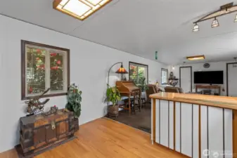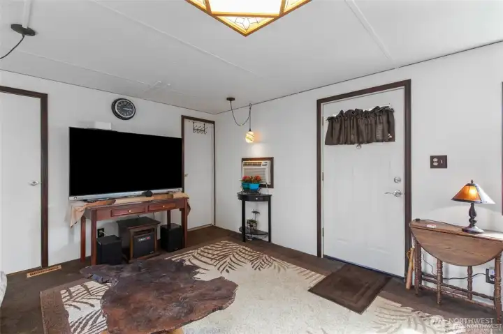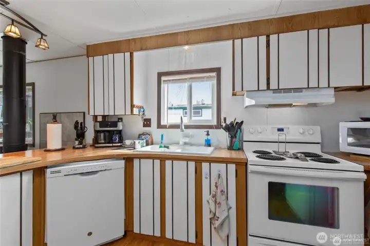 Enjoy peaceful, low maintenance living in 55+ Lakewood Villa. This move-in ready 2 bedroom, 1.25 bath home offers a comfortable open concept kitchen and living area. Primary ensuite with walk in shower, forced air heating, wired for generator and window A/C units. Features include three parking spaces, ample storage and a 10x20 shop for hobbies. Quiet riverfront community with a clubhouse and pool. Conveniently located near parks, the Burke Gilman Trail, Kenmore shopping, and Bothell dining. Low space rent Park lease approval required before offer can be accepted.