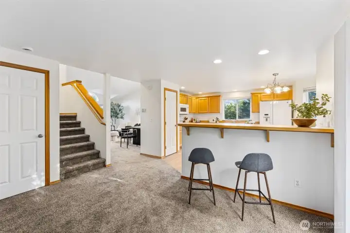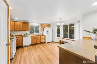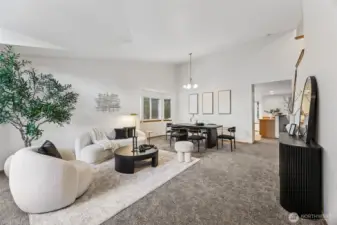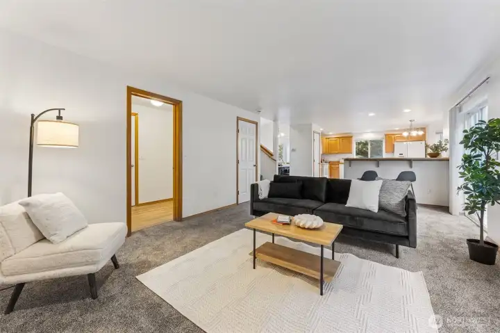 Resting on a large corner lot. An exceptional open & airy home. Thoughtfully designed home offers the perfect blend of comfort & flexibility. Spacious entry w/ formal living & dining room. Soaring ceilings, tons of natural light, skylight & large windows. The open floor plan features a family room w/ gas fireplace & slider to large fully fenced yard. Spacious kitchen w/ plenty of counter space, all appliances, breakfast bar & casual eating nook w/ bay window. Current updates, new carpet, pad, laminate vinyl flooring, freshly painted inside & out plus beautiful landscaping. 4 spacious bedrooms upstairs, primary w/ soaking tub, walk-in shower & walk in closet. Laundry room/mud rm off garage. Excellent location & Tahoma Schools! Move in ready!