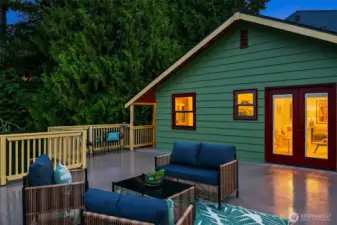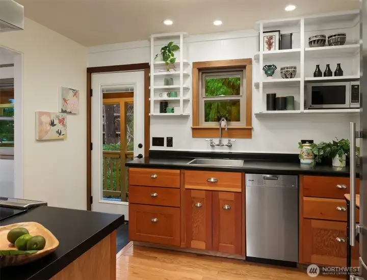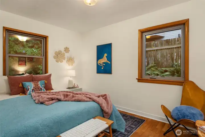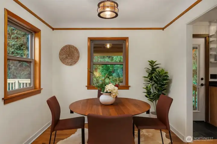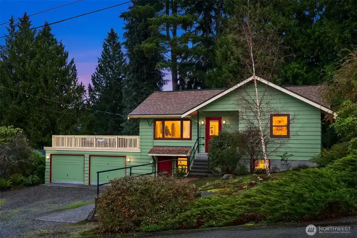 North Beach Gem with 3 BD, 1 BA. Enter the light filled living area with coved ceilings, beautiful hardwood floors, and French doors leading to large deck with amazing territorial and Sound views. Formal dining room off updated kitchen with induction Miele stove, dishwasher, Liebherr refrigerator, custom fir cabinets. Updated systems include: heat pump, H2O heater, electrical, plumbing, windows, doors, roof. Extra-large heated 2 car garage with shop space and partially finished basement with separate entrance for projects or finish for instant equity. Front load LG washer and dryer. Mature pollinator garden and lots of off-street parking. In the North Beach community with paid keyed beach access 5 minute stroll away. Quiet dead end street.