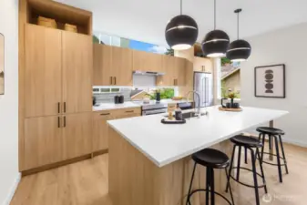 Stunning. Urban. Ballard. Nestled on a tree-lined street, these amazing new Olsen Anderson townhomes offer rare quality + exceptional design. Drenched in natural light, TH1 features an open floor-plan, generous rooms, designer finishes throughout. Prepare meals in an island kitchen. Retreat to a dreamy full floor primary suite which includes private spa-inspired bath, walk-in closet, and adjacent den/office. Covered deck off living room for year-round BBQ's. Targeting Built Green 4 Star. Enjoy all the benefits of high-end new construction: AC, state-of-the-art systems, EV-ready parking spot, much more. Stroll to great local dining, shops, cafes, night life, parks, Sunday Farmer's Market, transit. BUILDER-PAID 3.99% RATE AVAILABLE!