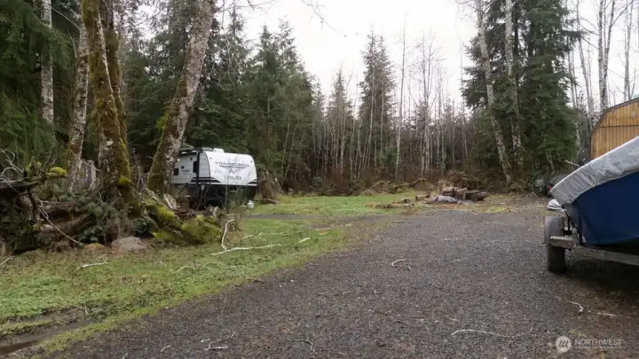 Beautiful 1.32 acres of property with all the essential improvements. Quality, tall fence and a gate provide great deal of privacy and protection from the outside. Inside the property are water hook ups with two 50 amp RV hookup sites and a 30 amp hook up for a camper. Creek running through the property with manicured camper sites, gorgeous landscaping materials, including big roots, rocks and trees dripping in moss. A nice, solid shed for storage. Property being sold as-is.