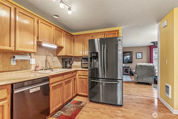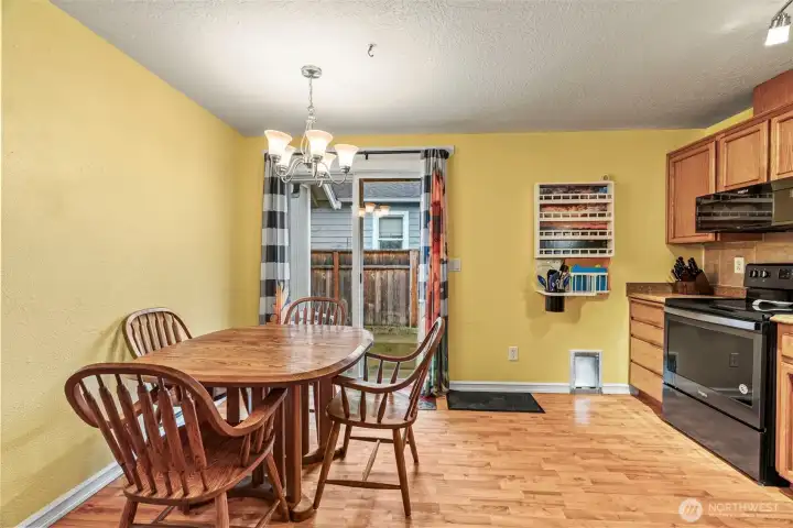 One-level living in this well maintained 3-bedroom/2-bathroom home with converted garage creating space for a generous bonus room with Huge laundry/pantry/storage, new hybrid water heater installed 2022. Enjoy the cozy living room with woodstove. Just off the kitchen/dining room is a lovely patio area for enjoying the outdoors with a tool shed at the back of the property. Back yard is fully fenced and easy maintenance. The front yard is nicely landscaped. Ample parking. This home is located near shopping, restaurants, schools, and the freeway.