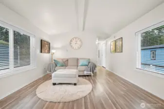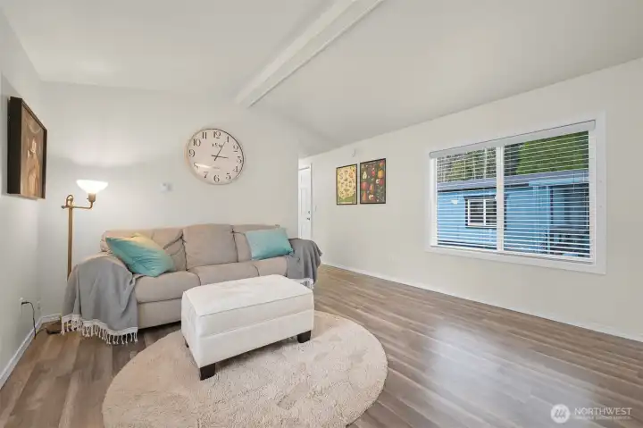 This affordable home is completely fixed up and move-in ready. Updates include roof, siding, flooring, appliances, storage shed, and more. Everything feels fresh, modern, and bright. Very large bedroom has two closets plus a nook with corner windows that could be used for office space. Excellent location is walking distance to all the fun of Birch Bay, including the waterfront promenade, beach walks, restaurants, waterslides, and Beach Cat Brewery. Ponderosa Estates is wooded and quiet, with year round living and no age restrictions. The park is in the process of adding a clubhouse, play area, pickleball courts, dog area, and BBQs and firepits. A fun place to live where you can build equity in your own home. Financing is available.