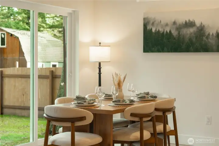Beautiful brand-new home in the desirable Sandy Point community! This 1,499 sqft single story home offers 3 bedrooms, 2 bathrooms with an open-concept layout, quartz countertops, stainless-steel appliances, and quality finishes throughout. Enjoy a large, fenced backyard surrounded by beautiful, mature trees. Complete with a fire pit area and freshly hydroseeded lawn - perfect for relaxing or entertaining outdoors. Sandy Point residents enjoy private marina access, boat launch, clubhouse, pool, pickleball courts, and scenic waterfront walking areas. Conveniently located between Bellingham and Ferndale, this home combines modern comfort with peaceful coastal living.
