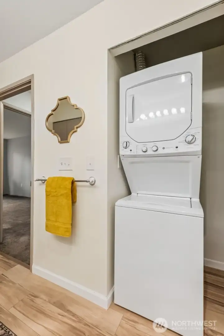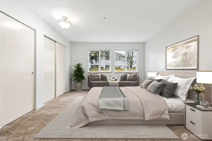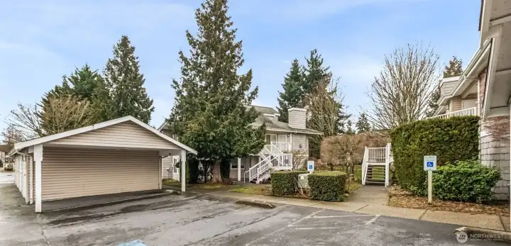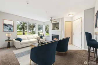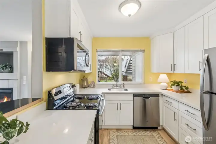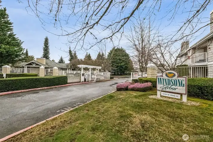 Windsong Arbor Condominium on Kent East Hill! Move-In Ready ground floor End Unit, all 1-story with 1 bdrm & 1 Full Bath in a gated community. Enjoy the spacious living room with LOTS of windows for light and a cozy gas fireplace. The kitchen is beautifully updated with white cabinetry, soft close & pull-out shelving for easy access, quartz counters & newer flooring. All appliances stay (incl washer & dryer). The oversized bedroom has 2 spacious closets. Full bath has new flooring. Parking includes an assigned carport plus an uncovered space for a 2nd vehicle. Handy exterior storage off a sweet front porch. Enjoy community amenities, incl. clubhouse with exercise room, gathering area, sports courts & pet Park. Location, location...all in great proximity to shopping, restaurants & freeways. Owner will pay amount of 3 mos HOA dues for Buyer and Seller's HOA Special Assessment Balance at Closing. Must See! (Living, Dining & Bedroom Virtually Staged).
