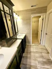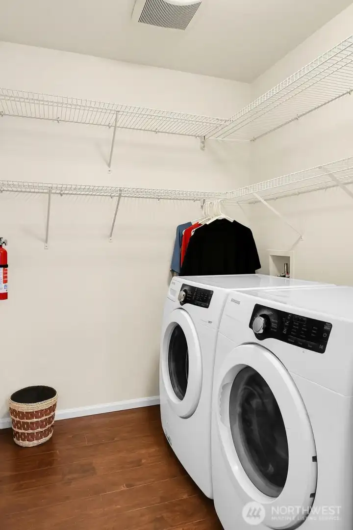 Welcome to this beautiful, well-maintained 3-bedroom, 2.5-bath home, situated on a corner lot in the desirable Radiance community. The updated kitchen features granite countertops, stainless steel appliances, and a walk-in pantry. Brazilian cherry hardwood floors on the main level and custom-designed powder room with high-end finishes. All three bedrooms are located on the second floor, including a spacious and private primary suite with an updated 5-piece bathroom and walk-in closet. New carpet in all bedrooms, along with a updated second bathroom. Two-car garage offers ample space for storage and a work area. Enjoy year-round comfort with A/C and relax on the cozy patio. Located near playgrounds, parks, and walking trails. A must see!