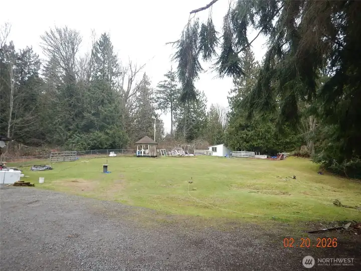 NW Contemporary style home on 2.34 fenced and gated acres. Rolling land with old growth trees and plenty of grassy areas. Multiple decks overlook your private park. Enjoy the view while relaxing with your beverage of choice. Enter into a 2 1/2 storied living room with artistic slate floors. The woodstove keeps everything toasty warm. Soaring ceilings lead to a loft, currently used as a bedroom but would also make a great den or sitting room. The Kitchen has plenty of storage plus access to another deck. 2 bedrooms and a full bath off the kitchen. The "wing" for the Primary suite needs paint and flooring but is plumbed for a 3/4 bath and could include a sitting room & luxurious walk-in closet plus office and kitchenette. The kitchenette in the primary suite area is a nice convenience. Multiple rooms have been converted from detached garage. There is also a stable and a gazebo on the property. One additional building has been informally converted to a guest cottage. This property would be a great place to host a wedding and has great potential for ADU/DADU - buyer to investigate. No warranty. Fee Simple - deeded land! Walking distance to the beach. Bring your offer! Don't miss out on this one!