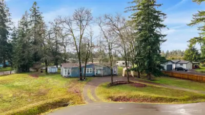 Well-maintained 3-bedroom, 2-bath manufactured home situated on a spacious 0.8-acre corner lot at the end of a quiet cul-de-sac. Light-filled interior features skylights, ceiling fans, and a charming bay window. Equipped with an efficient heat pump for year-round comfort. Expansive lot offers ample room for a detached shop, RV, or additional parking. Enjoy the space, privacy, and potential this property provides—come take a look!