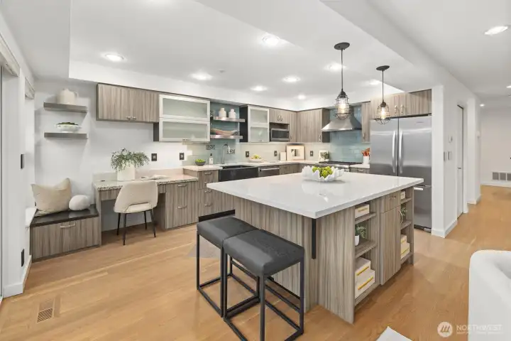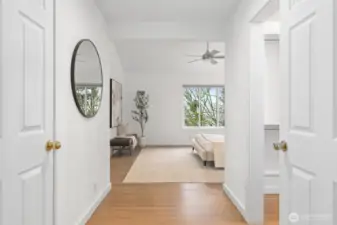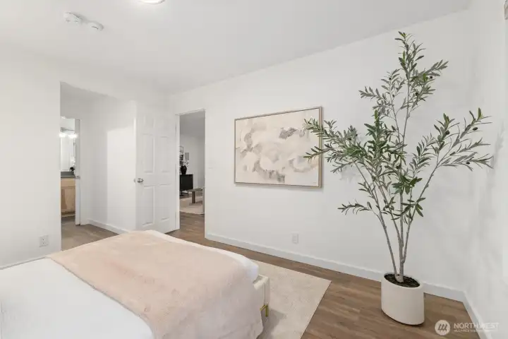 Light-filled & extensively updated, this 3-beds townhome is conveniently located near shopping, Microsoft, & major commuter routes. Featuring fresh interior paint & recently refinished solid hardwood flrs, w/no carpet only hard flooring on all levels. Remodeled kitchen w/quartz counter & SS appliances opens to the main living area w/gas fireplace & large windows for abundant natural light. All baths have been remodeled, including the primary bath w/heated flrs & a tiled shower. A lower-level rec rm provides flexible space for a home office or additional living area. Additional updates include a remodeled laundry rm & a newer water heater. Well-run HOA, A/C, double-pane windows, 2 decks, 2-car garage, and Lake Washington School District.