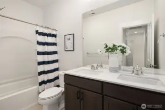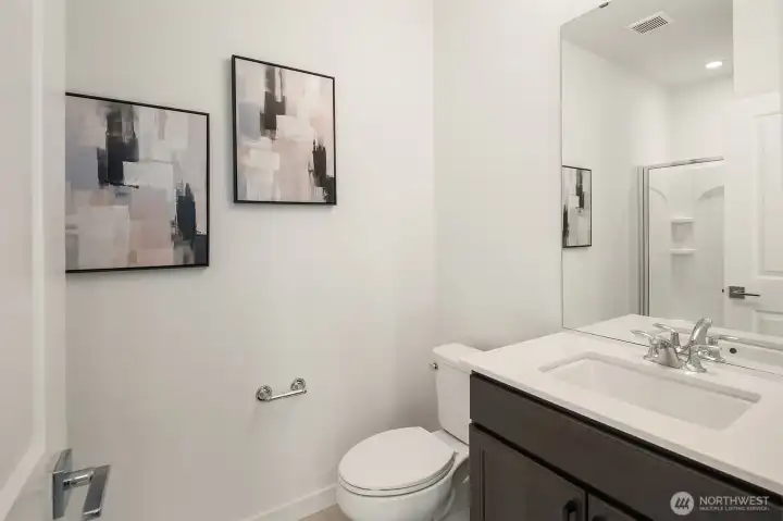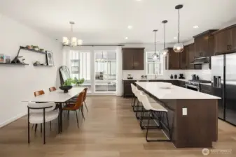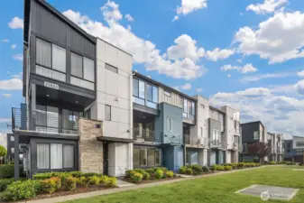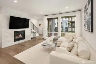 Experience modern living in luxury community w/contemporary architecture & exceptional finishes. This stunning 4BR/3BA residence, ideally situated w/views of central park. Floor-to-ceiling windows & Toll Brothers signature 9 ft’ ceilings flood the home w/natural light. Open-concept main floor showcases chef's kitchen w/abundant cabinetry, large island & SS appliances, flowing to dining area & spacious living room w/cozy gas fireplace & covered balcony w/gas hookup. Primary suite features spa-like shower & walk-in closet. 2 additional bedrooms & hallway bath complete upper level. Guest bedroom w/en-suite bath & 2-car garage w/EV charger on lower level. A/C included! Coveted Northshore SD. Excellent commuter access. Close to all amenities.