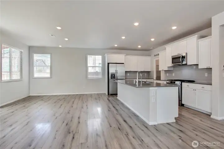 Beautifully upgraded Bainbridge offering spacious living in desirable Daybreak. Home features a rare main floor mother-in-law suite with private entrance, kitchenette, laundry, etc, perfect for multi-generational living. The gourmet kitchen offers gas stove, Quartz breakfast bar, and opens to spacious dining area and living room with modern finishes and gas f/p. Upstairs finds your luxurious primary suite with 5-piece ensuite & lg walk-in. There is also a bonus room, utility room, 2 bedrooms and an office. Enjoy outdoor living on the covered patio with included furniture, and grills. Also, 3-car garage with storage and TV. Close to park, trails, & top-rated schools—this home offers comfort, convenience, and style in one exceptional package.