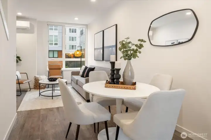 Newer construction meets effortless urban living in this sophisticated Isola Homes residence, perfectly positioned between Green Lake & Roosevelt. Light-filled & impeccably maintained, the open-concept floor plan features high ceilings & refined finishes. Expansive upper level primary suite offers walk-in closet & spa-like bath. Ground floor: bed, bath, & fenced patio. Mountain views from the generous rooftop deck—perfect for entertaining. Enjoy convenient access to: Light Rail (3 blocks), Green Lake paths, Whole Foods (1 block), Roosevelt shops & cafés, parks, UW, & transit. All steps away. Rare off-street parking adds convenience. No HOA! Exceptional condition & premier location make this home a standout for warm modern Seattle living.