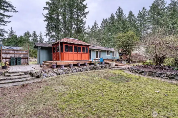 Rare opportunity for RV enthusiasts! This One-owner, one-story home on nearly 3/4-acre level lot w/an exceptional 18' x 45' RV garage featuring a 14' door, 30-amp power, plus a 2 car garage & on-site storage container--ideal for toys. This 1,634 sq ft home w/3 bedrooms & 1 3/4 bath offers a nice mix of formal and informal spaces. Kitchen features granite countertops & stainless appliances and newer carpet in the main living areas. Major updates are complete, including vinyl windows & skylights, heat pump, electrical panel and roof all in the past 10 years. Bathroom & bedroom flooring offer an opportunity to add your personal touches. Relax on the large deck with built-in BBQ--Comfortable one-story living in a prime Gig Harbor location.