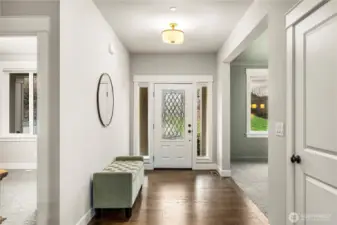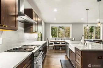 Custom-built daylight basement rambler on shy 1.5 acres. private close- in location! Surrounded by green belt & tucked in the back of gated community. Quality finishes throughout on this 4 bedroom + den, 3 bath home. Soaring 10-foot ceiling in lower level, 2 covered decks and fully fenced rear yard. Basement is pre-plumbed and wired for kitchen too! Heated tile floors, wine fridge, built-in shelving in family room, professional gas cook top, butler's pantry, 3 car-garage and room for a shop to be built! Lives like a one level rambler with 3bd 2 bath and laundry upstairs. This is the builder's own home with thought out features throughout.