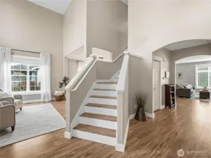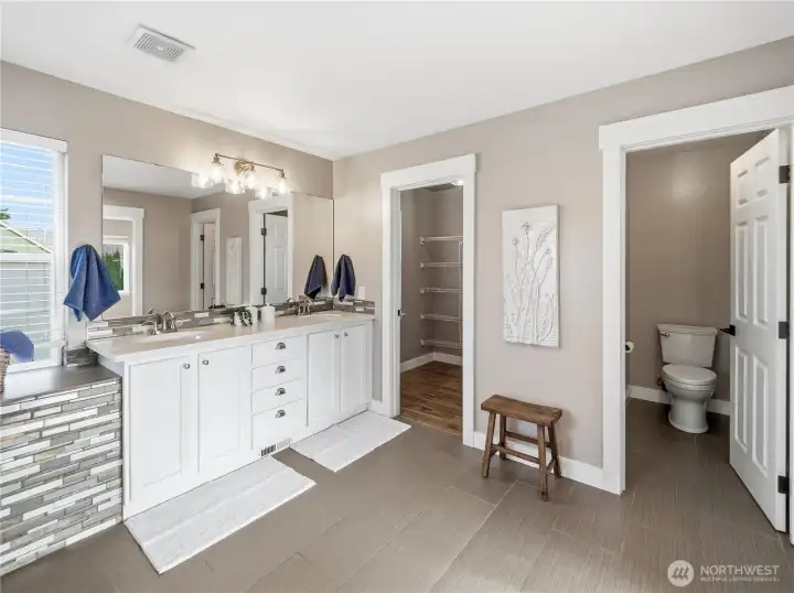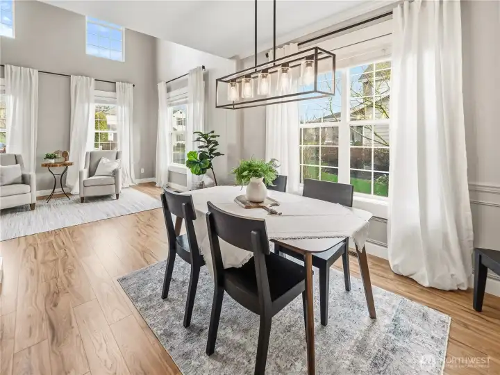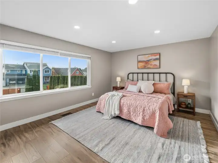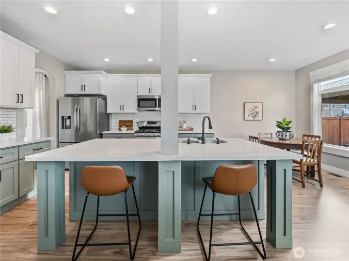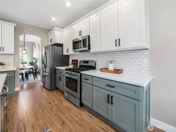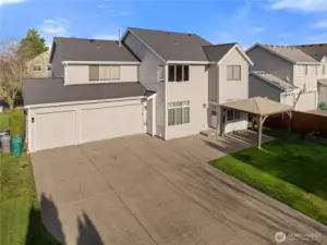 Beautiful territorial & Mt. Rainier views from this 2,510 sq ft, 3-bed, 2.5 bath, plus office & bonus room on a 9,240 sq ft lot in The Meadows. Fully updated open concept kitchen w/ SS appliances, Quartz slab countertops, breakfast nook and island bar seating. Family room w/ gas fireplace insert plus formal living & dining. Huge primary suite w/ walk-in closet, custom tile shower, tile floor, dual sink vanity & soaking tub. New roof & exterior paint in 2021. All new hard surface flooring throughout. Alley access 3-garage w/ tons of off-street parking, huge concrete patio, and cabana. Gas forced air heat, forced air AC & gas HW. EZ access to trails, play fields, tennis courts & schools K-12 are all walking distance.