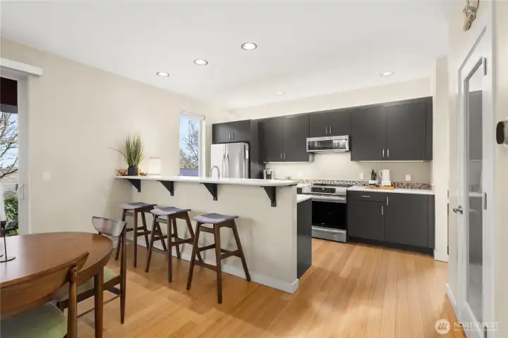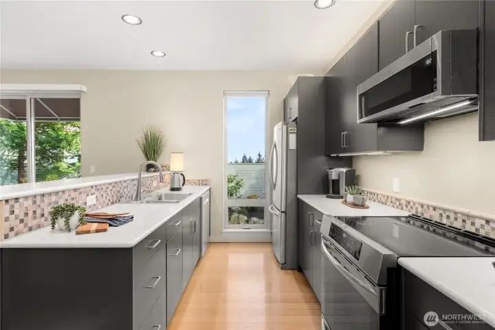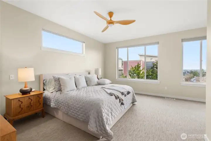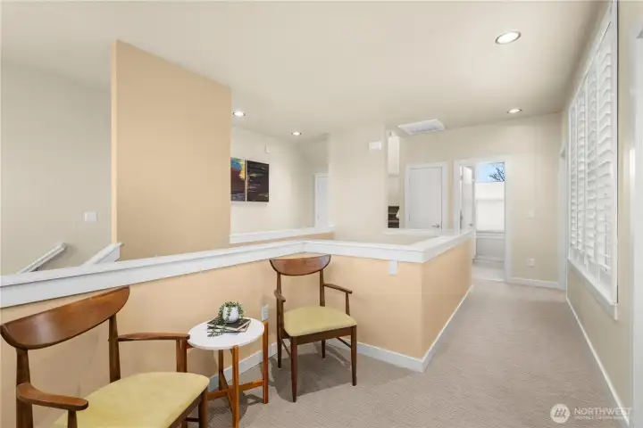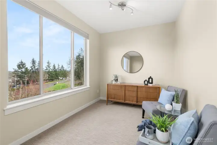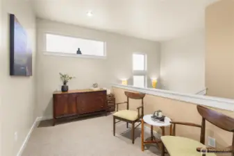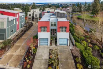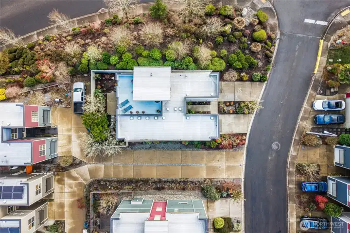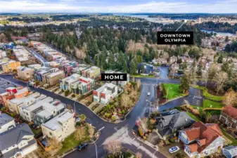 Perched in a prime Tumwater location, this modern, eco-conscious urban home offers the kind of daily living experience that feels elevated in every sense of the word. The Overlook is more than just a home--it's a retreat, a workspace, and a front row seat to some of the most iconic scenery Washington has to offer. You'll appreciate the thoughtful layout and low-maintenance design that makes this home ideal for anyone seeking a streamlined lifestyle without sacrificing luxury or personality. Notice how effortlessly the home balances contemporary design with natural warmth. Bamboo flooring runs throughout the main level. The kitchen anchors the main level with clean finishes and smart design. Natural light and landscape enhance the living areas. Upstairs one of the most distinctive architectural elements of the home is the open mezzanine-style second level. It's a dynamic, airy space that feels intentional and inspiring. Spacious primary suite with 5-piece spa like bath, sitting area for privacy and taking in the views. Private rooftop patio and finished rooftop room. Serene outdoor living with privacy fence. A charming patio for outdoor dining or lounging. Professionally built, permitted salon/studio space with separate entrance. Flexibility is built in and the value is undeniable-private studio, home gym, music studio. Prime corner lot protected by HOA landscaped parcel. Outlook Park across the street. Low maintenance urban living means more time enjoying your home.