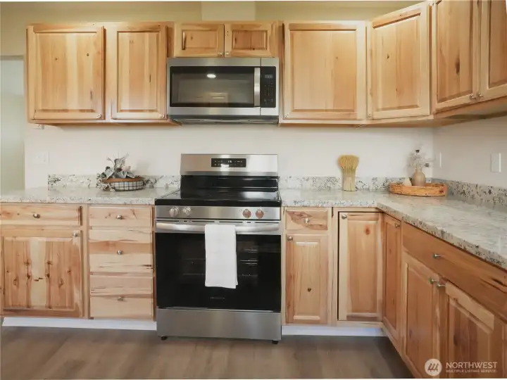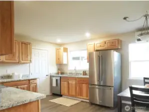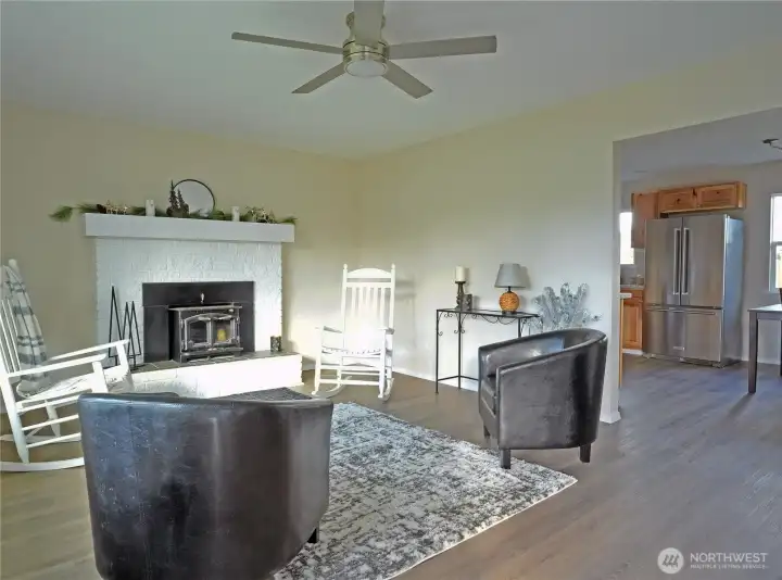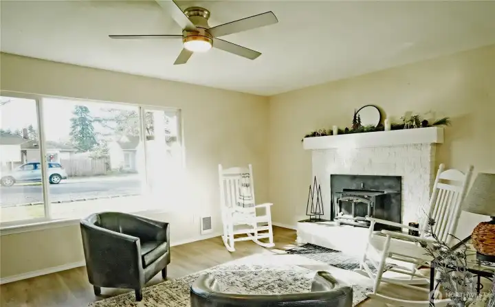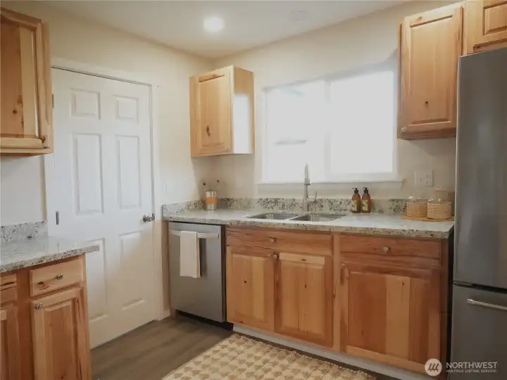 Better than New! This well located 2 bedroom home has something for everyone! Recently updated - move in ready! New kitchen including appliances, new bath, new flooring, all new trim, doors and cabinetry throughout. New electrical panel and plumbing updates. New roof. Features hickory cabinets with quartz counters, energy efficient windows. Spacious living room with fireplace with wood insert. Separate utility room with cabinets and storage. Convenient ductless heat pump for heating and cooling. Single garage, big fully fenced backyard, concrete patio. No-step entry into home or garage. Excellent Mt View location. This is a solid home offered at a great price!