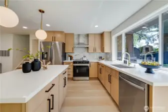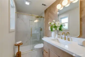 Stylish, fully updated tri-level in Bothell near Canyon Park! The bright main floor features an open layout, a modern wood-burning fireplace, and a stunning kitchen with quartz counters, a large island, and new appliances. An oversized slider fills the dining area with natural light and opens to the patio. Upstairs: three bedrooms, including a spacious primary suite with private en suite and deck access. Downstairs offers a 4th bedroom or office, a large rec room with an electric fireplace and beautiful accent wall, ¾ bath, and laundry/utility room. The two-car garage, shed with electricity, and backyard storage shed offer room for all your hobbies on the 8,712 sq ft lot. Tucked into a quiet neighborhood close to Northshore schools & parks.
