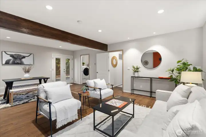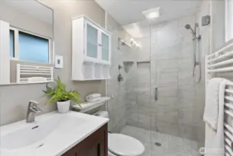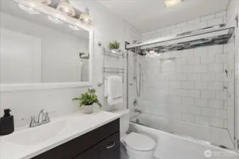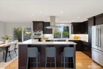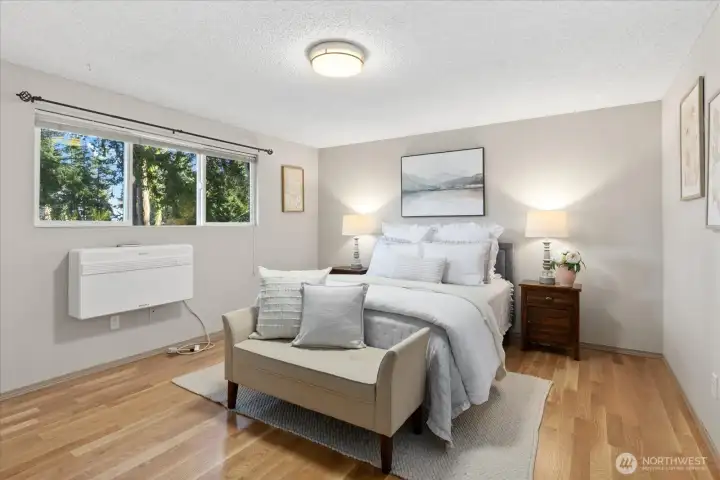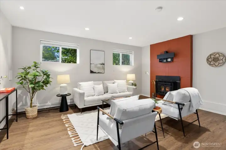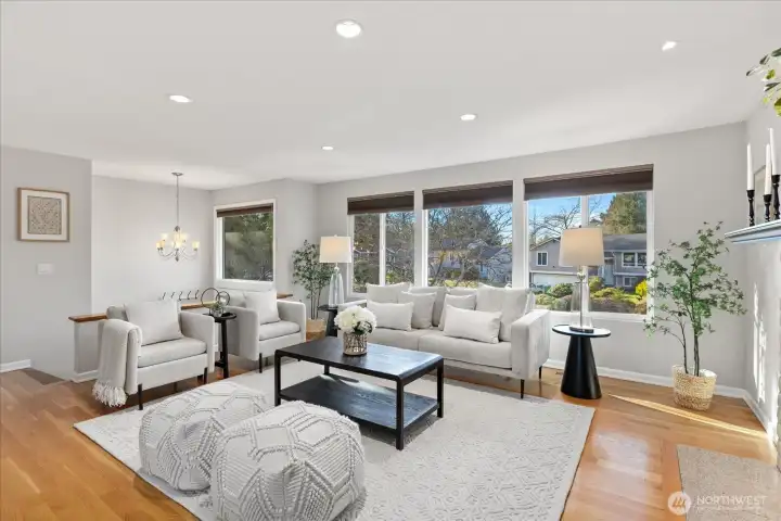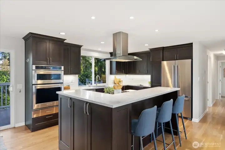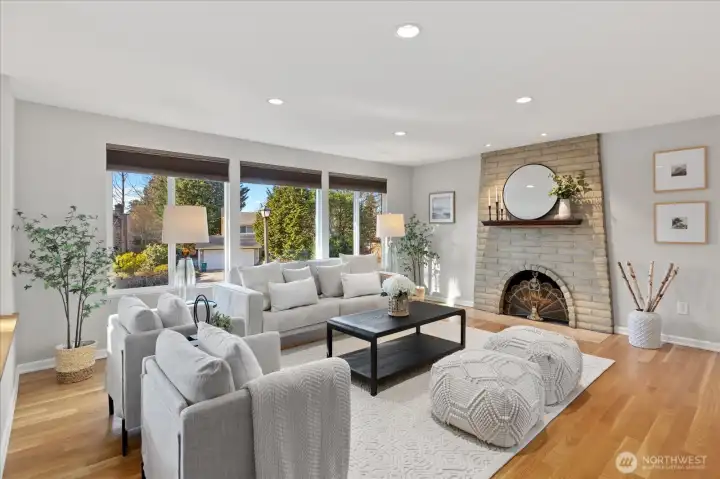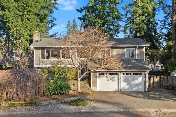 Nestled down a quiet cul-de-sac in the coveted Finn Hill neighborhood of Kirkland, you will find this meticulously maintained and beautifully renovated home. Stunning chefs kitchen with SS appliances, custom cabinetry, quality finishes and abundant natural light with views of the Cascades. Open floorplan with huge island and gas cooktop allow for easy entertaining in the spacious living and dining areas. Gather around the wood burning fireplace or step outside onto the composite deck to dine al fresco. Three large bedrooms including a primary ensuite with towel warmer, heated floors and dedicated AC. Downstairs you'll find a spacious rec room with second fireplace, providing endless possibilities for entertaining. Bonus room would make excellent work from home office, game room or studio. Front and back yards offer ample space to garden, play, bbq or simply relax in the Jacuzzi hot tub. Large two car garage and expanded driveway for extra parking. Updated systems throughout include newer roof, heating, cooling, electrical, water main, paint and flooring. Located just minutes from parks, shops, restaurants and within the Lake Washington School District. Welcome Home!