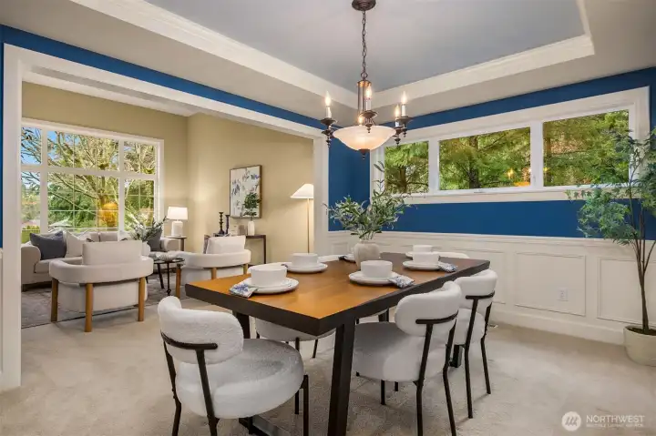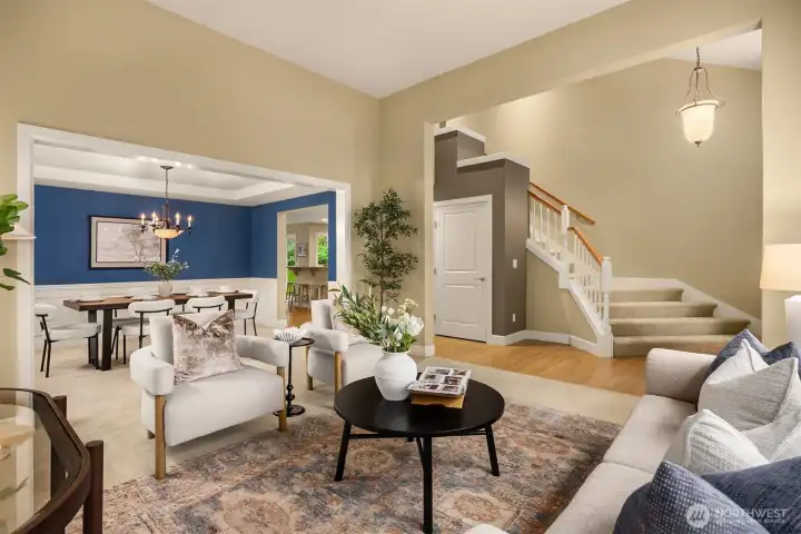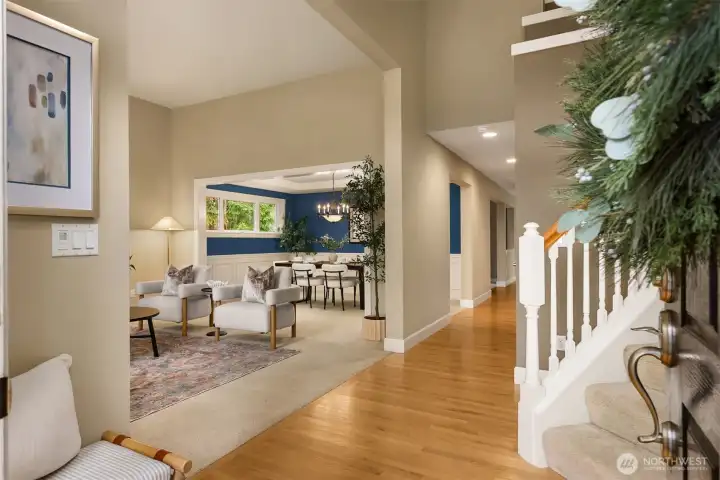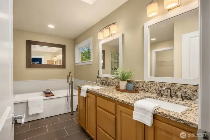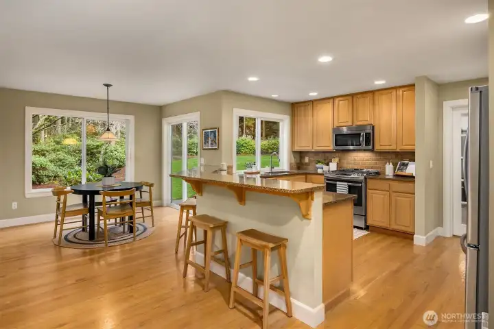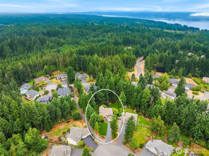 Nestled in the desirable Woods & Meadows community, this impeccably maintained home sits at the end of a quiet cul-de-sac on an attractive Knoll & boasts a spacious backyard framed by a greenbelt & flawless, mature landscaping. Vaulted ceilings & abundant natural light enhance the inviting living room, while the elegant dining room is ideal for entertaining. The well-designed layout features a cozy family room with a gas fireplace, a charming breakfast nook, a thoughtfully arranged kitchen that has been beautifully updated & an oversized game room just off the kitchen. This popular & functional floor plan also includes four oversized bedrooms, a bonus room, two staircases & a generous primary suite with a walk-in closet & a gorgeous ensuite bath. Conveniently located near schools, Bangor, shopping, and ferries. This peach is just a short drive to downtown Poulsbo.