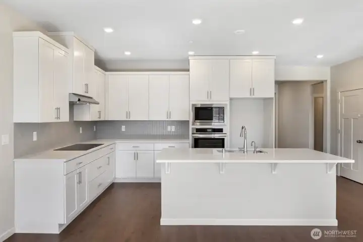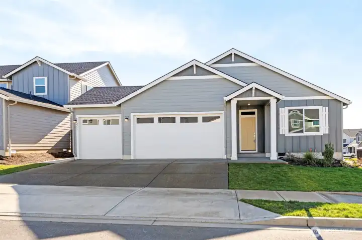 Almost new and built in 2024, this beautifully designed single-level home offers 4 bedrooms and a 3-car garage in a desirable Ridgefield neighborhood. The spacious great room features a cozy gas fireplace and flows seamlessly into the kitchen and dining area, creating an ideal space for everyday living and entertaining. The kitchen is thoughtfully appointed with quartz countertops, a large island, induction cooktop, stainless steel appliances, and a pantry. The private primary suite boasts a spa-inspired bathroom complete with a soaking tub, walk-in shower, double sinks, and an expansive walk-in closet. Step outside to a fully fenced backyard featuring a covered patio with extended concrete—perfect for relaxing or hosting gatherings. Nestled in a quiet community with walking trails, a park, and basketball court, this home is just minutes from shopping, dining, and convenient freeway access. Modern comfort, style, and location all in one exceptional property.