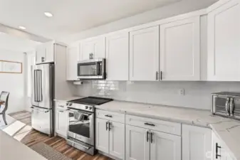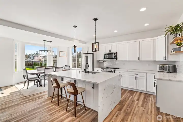 Beautifully updated 3 bed, 2.5 bath home offers an open-concept floor plan with laminate flooring throughout the main level. The kitchen is a standout, featuring elegant white cabinetry, stainless steel appliances, and stunning quartz countertops—ideal for cooking and entertaining. The spacious primary bedroom includes a luxurious 5-piece ensuite bath and a walk-in closet, creating a true retreat. Step outside to the large backyard complete with a covered patio—perfect for entertaining guests year-round. Additional amenities include air conditioning, a fully fenced yard, RV parking, and more! Located just minutes from JBLM, PLU, shopping and dining, highways, and bus routes, this home offers both convenience and comfort.