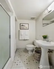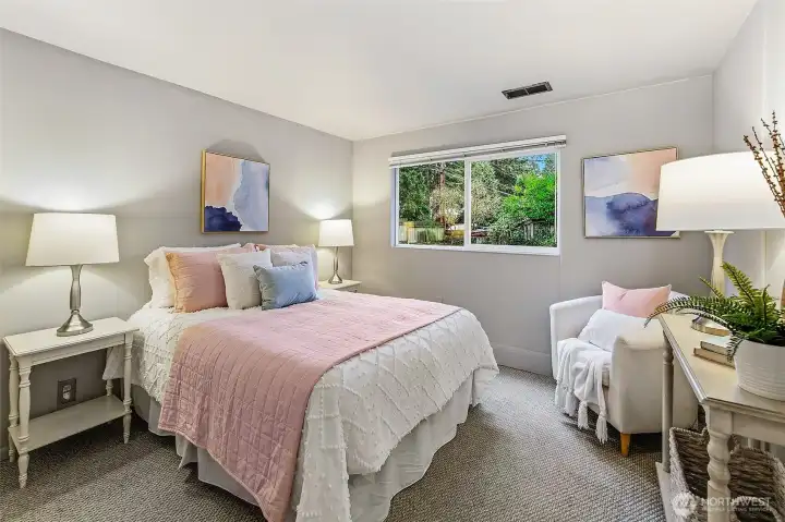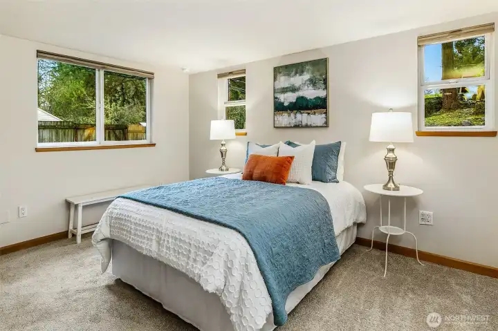 Mid-century home w/pride of ownership! Slate entry leads to sunny kitchen w/eating space, formal living & dining room. Living room has newly refinished hardwood floors, fireplace & wall of windows w/slider that opens to spacious deck overlooking private fenced yard, perfect for entertaining! 3 beds on main floor w/new carpet & full bath. Lower-level features family room w/bar & fireplace, 4th bedroom/office, ¾ bath & primary suite w/walk-in closet, attached bath w/heated floor! Other updates incl some fresh paint & new TPN roof! Situated on corner lot on quiet street just steps from Interurban Trail & short walk to restaurants, Town & Country Market & more! Minutes to light rail station & easy commute to downtown. Popular Shoreline Schools!