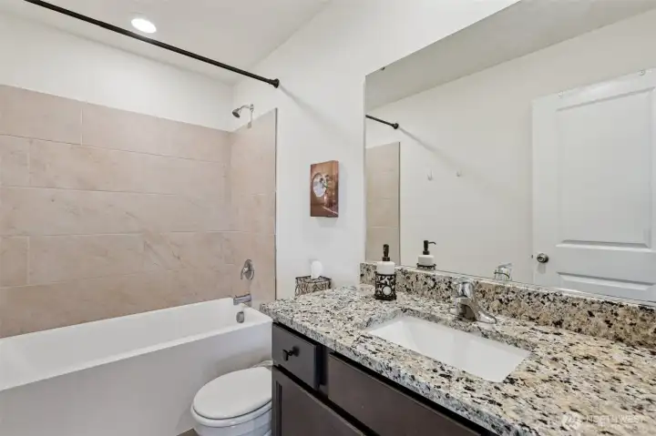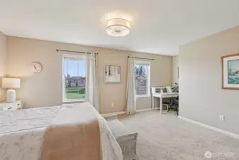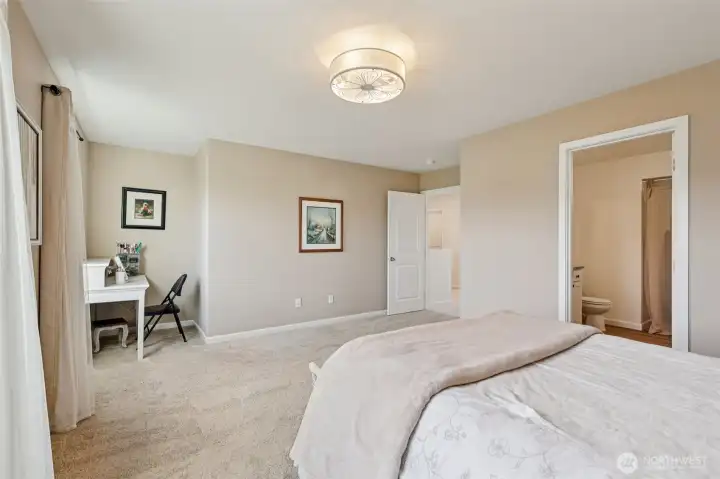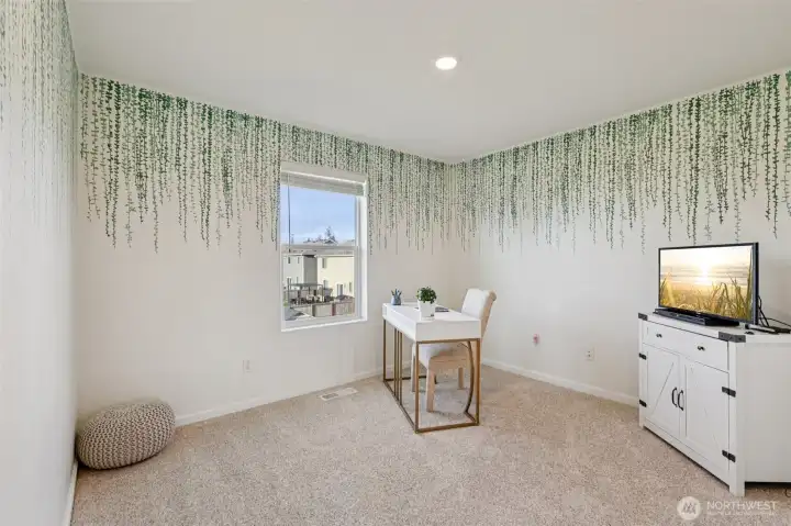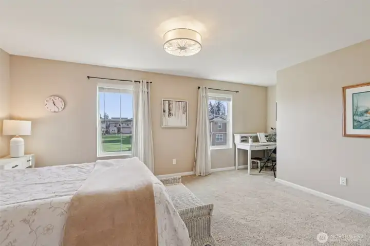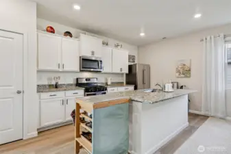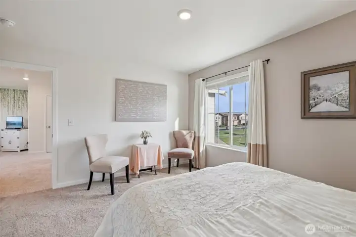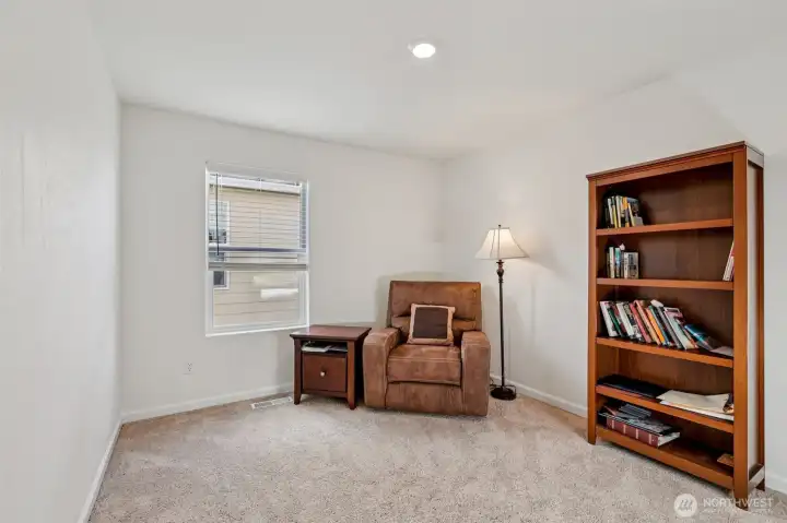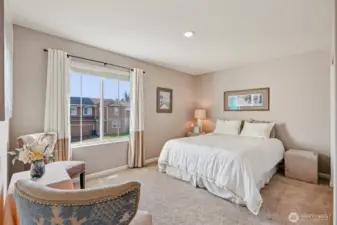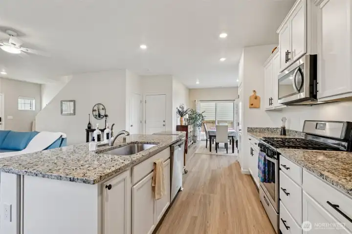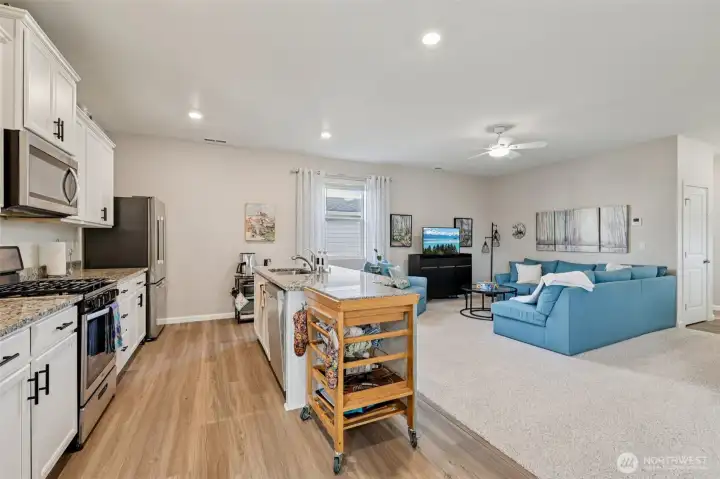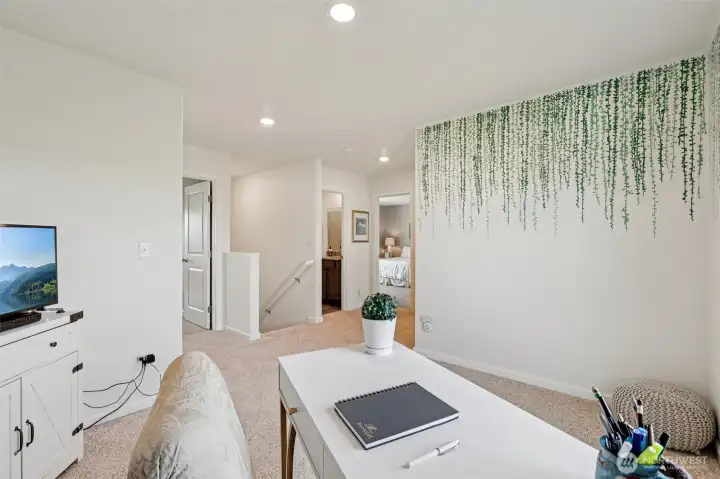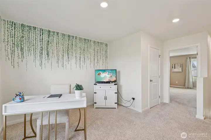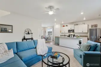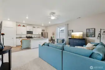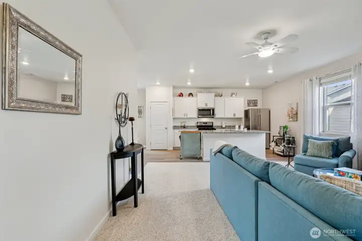 Welcome to this beautifully maintained home, just three years old and thoughtfully cared for by its original owner. The inviting layout includes a comfortable separate dining room and a kitchen with gas cooking and a convenient pantry. Custom shelving in the under-stairs closet adds smart storage, while upgraded carpet enhances the living room, stairs, and loft. The loft offers a flexible space for many uses. The spacious primary bedroom features a generous nook, a large bathroom with soaking tub and new light fixture, plus an oversized walk-in closet. Air conditioning, new ceiling fans, and established front and back landscaping complete this peaceful setting.