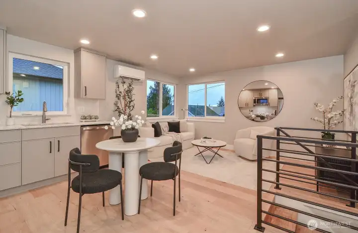 Remarkable stand alone street facing home built by a highly respected third generation West Seattle builder known for quality and craftmanship. Main floor features entry with white oak engineered wood floors, the primary bedroom with a beautiful tiled bath, large shower with glass door. Laundry area and a good sized garage with available electric charger. Second floor features the great room with luxe kitchen with stainless steel appliances. Good sized bedroom with a walk-in closet. Full tiled bathroom. Located in a very pleasant neighborhood with lots of walkers.