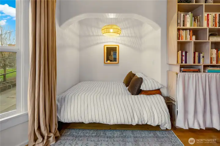 Cooperative urban living at its finest! Design forward, ultra functional, affordable, and cozy, this unit has everything you need for living your best life on top of Capitol Hill. Large kitchen with Bertazzoni induction range, tons of shelving, and plenty of prep space for even the most discerning home chef or baker. Views of the space needle from the gorgeous bay windows with NW exposure allowing ample light throughout the year. Unbelievable amounts of smartly laid out storage in every corner, built in cabinets and shelving throughout. Space for absolutely all of it. Each portion of the home perfectly balances comfort, efficiency, and aesthetics. Laundry in building is free and machines are brand new. Bike storage + 9.8/10 Walkscore!