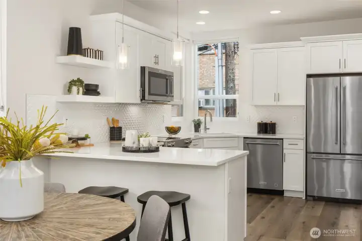 Best location and move in ready! Bright, modern & effortlessly cool 3BR, 2.5BA 4-Star Built Green townhome pairs sustainability with high end finishes and style in a prime neighborhood. Oversized windows fill the open living spaces & sleek bright kitchen with natural light; abundant storage, eating island, pantry and KitchenAid appliances make entertaining easy. The top-floor primary ensuite offers a spa-like bath, two closets, full size W/D + private terrace. Two additional main floor bedrooms flex for guests, roommates, work-from-home. Enjoy year-round comfort with mini splits (heating/cooling), off-street parking & unbeatable access to UW, transit, parks & amenities. Like-new 2020 construction, freshly painted, ready to enjoy! No HOA.
