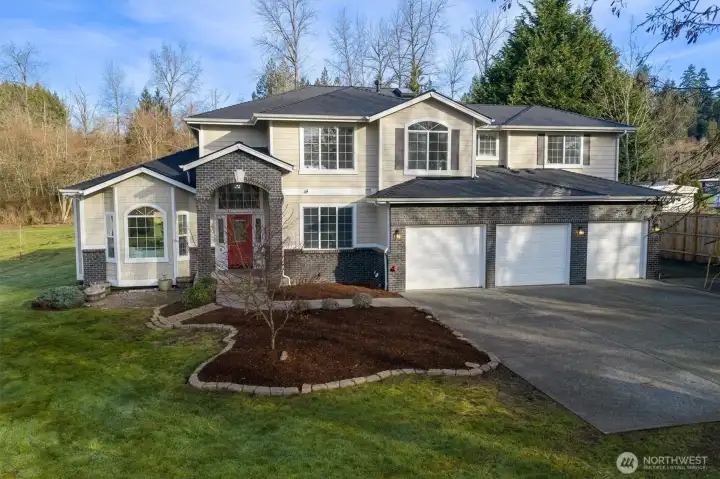 Nearly 5 acre retreat featuring a spacious 4-bedroom home just minutes from Bothell & Mill Creek amenities. Beautiful, level and usable acreage with frontage on tranquil Little Bear Creek...home to seasonal salmon spawning! The property includes fruit trees, garden space, and generous open areas perfect for play, pets, sports or simply soaking in the peaceful setting. A formal living room with soaring ceilings flows seamlessly into the dining room with elegant French doors that open to a patio overlooking the peaceful setting. The open-concept kitchen includes a sunny breakfast nook with slider that opens to a large outdoor patio & deck. An open-concept great room features a gas fireplace and glass doors with easy access to an entertainment size deck. Enjoy relaxed al fresco dining with friends, while taking in the surrounding natural beauty! Office on main, 4-bedrooms and laundry room on 2nd level. An oversized 3-car garage plus separate shed provide ample storage. RV and boat parking, plenty of room for your toys! Brand new roof installed in 2026. Other recent updates include central A/C, water filtration and softner, hot water heater, new septic pump and baffles. Highly rated schools. Located within unincorporated Bothell this property provides a peaceful, rural ambiance with ample space to relax, unwind and enterttain! Easy access to I-405, Hwy 522 and the tech hubs on the Eastside. No HOA fees!