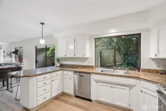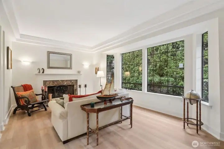 Walkable & turnkey downtown Edmonds Bowl 4-bed home w/ new 40-yr roof. Welcoming formal living w/ bay windows, wood-burning fireplace & detailed millwork. Columns define formal dining space & add architectural interest. Open-concept great rm w/ 2nd wood-burning FP & casual living/dining. Kitchen w/ shaker-style white cabinetry, granite counters/backsplash & counter seating + SS appls & LG pantry closet. Hardwoods throughout main. Slider opens to patio for seamless indoor/outdoor flow. 1-bed main, 3 up. Generous Primary Suite w/ WIC & luxe bath floating dual vanities, skylight, LG walk-in shower, + jacuzzi tub. All baths updated. Upstairs laundry. Privately setback on 4th Ave w/ 2-car attached garage + ample driveway pkg for guests/RV/boat.
