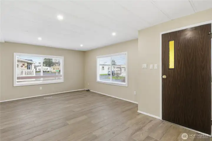 Situated in the desirable Mountain Villa Estates 55+ community, this updated 2-bedroom, 2-bath home offers peaceful mountain views with quick access to Enumclaw’s shopping, dining, and daily conveniences. The 1,152 sq ft open layout features laminate flooring, fresh interior paint, updated cabinetry, modern lighting with LED fixtures, and a smart thermostat for added efficiency. The kitchen has been refreshed and includes all appliances, while both bathrooms feature tiled walk-in showers. Energy-efficient windows with mesh screens and new porch carpet complete the updates. Enjoy comfortable, low-maintenance living in a scenic setting just minutes from town.
